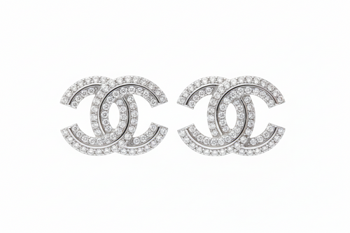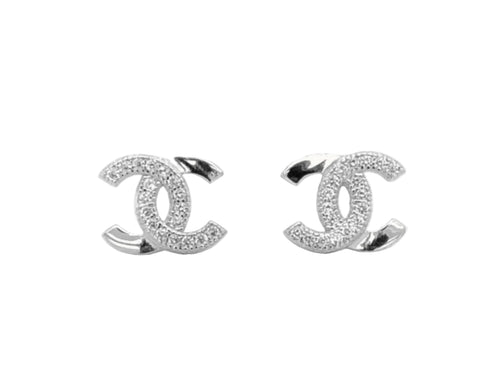 Designer Inspired CC logo Sterling Silver CZ Studs Earrings