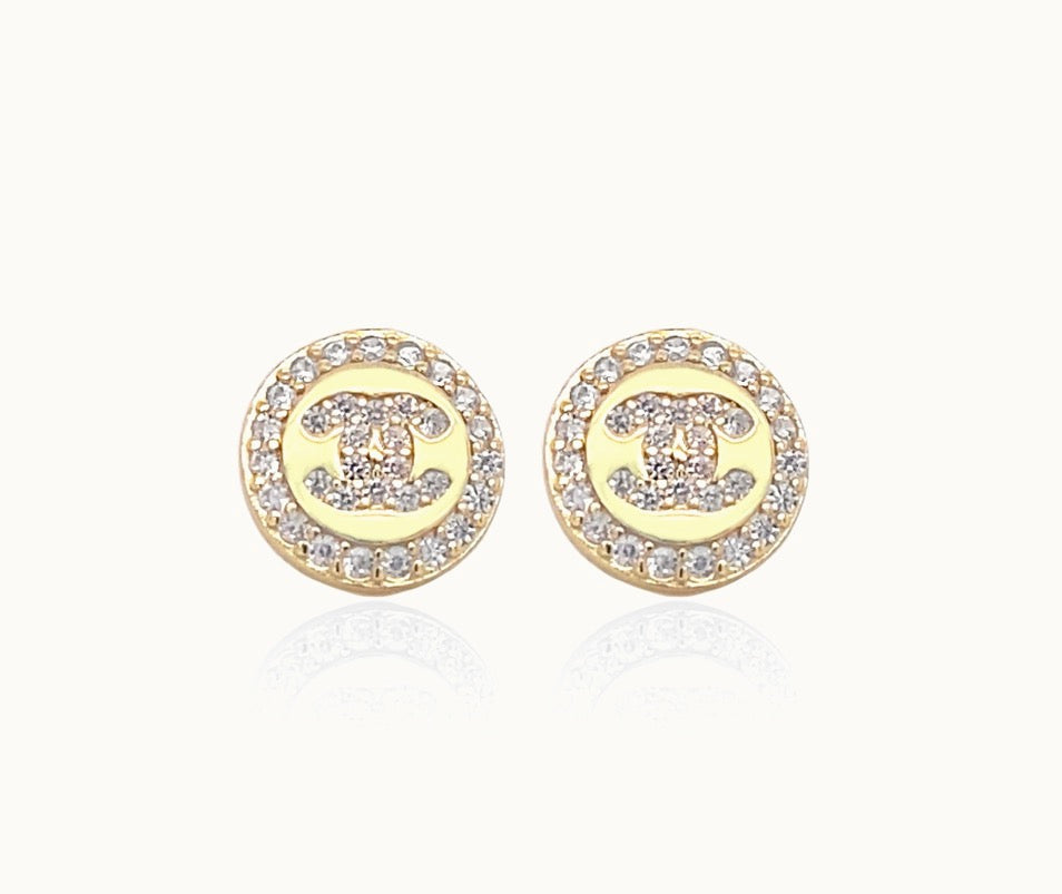 Designer Inspired CC logo Circle Studs with 18k Plating and CZ stones