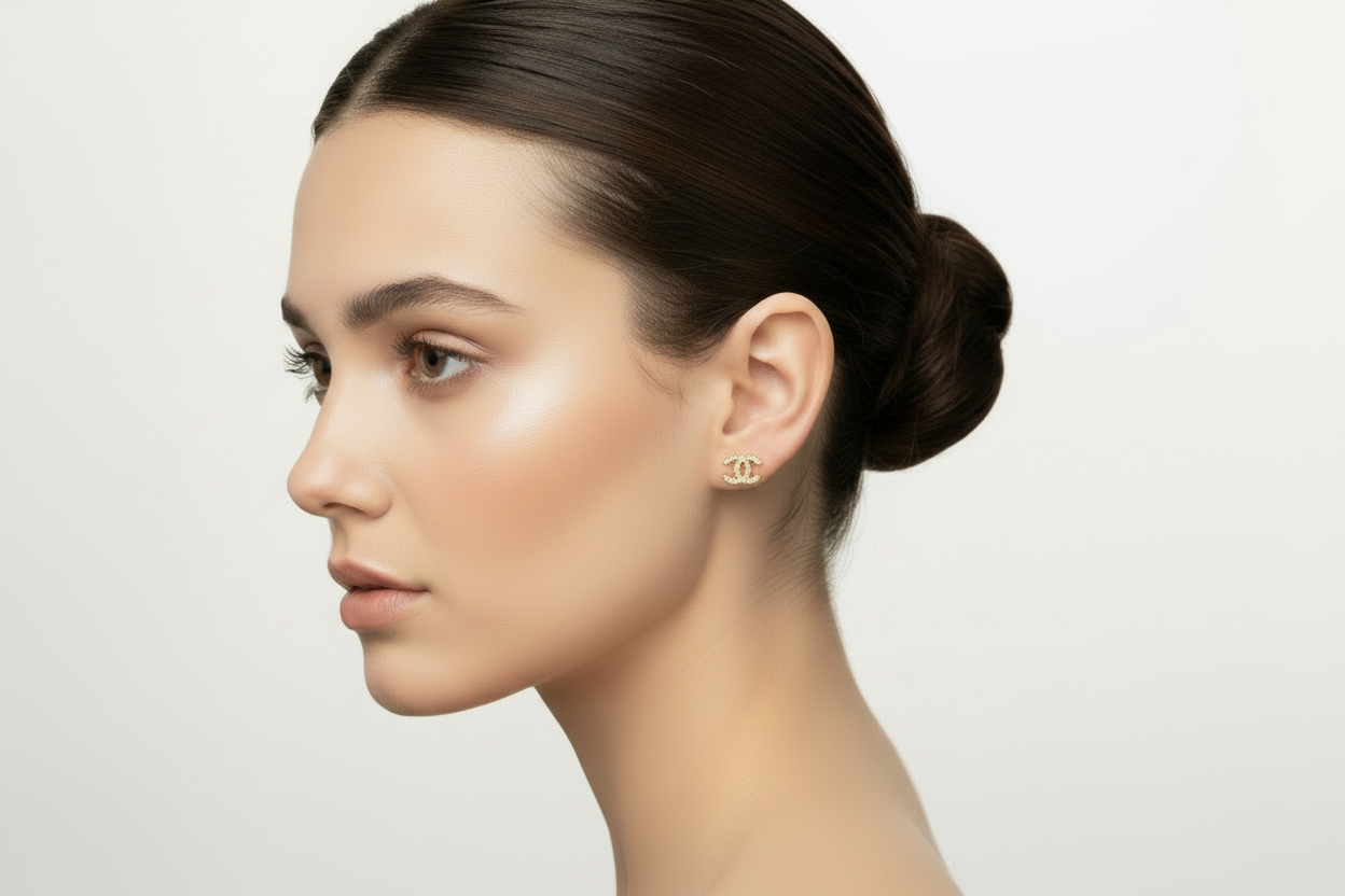 Designer Inspired CC logo Gold Plated Studs Earrings
